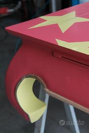 Tavolino da the cinese anni '70, completamente restaurato e dipinto con vernici all'acqua, dipinto a mano