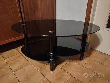 Bellissimo tavolino design da salotto/TV, in vetro nero e struttura in acciaio, con due ripiani sfalsati dimensioni 60 x 90 x 43 altezza 90€ Ritiro Giussago PV