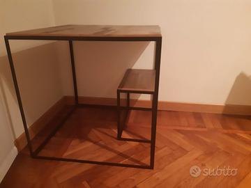 Tavolino di design con struttura in ferro nero e ripiano in legno pieno trattato. Misura 59cmx59cmx59cm. Ha una mensola sottostante che misura 20cmx39cm. Si pulisce facilmente con un panno umido. Usato pari al nuovo. Vendo per 40 euro.