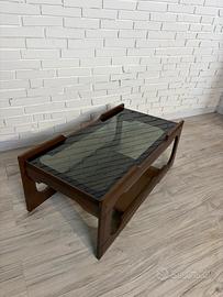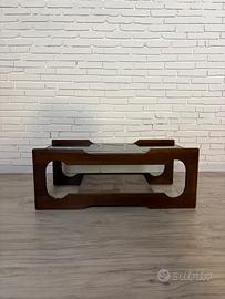 Tavolino design italiano modernariato anni ’60/’70 In noce con vetro fumé e ripiano inferiore. Elegante coffee table vintage. Dimensioni: L96P50H37 Ortime condizioni, coerenti con l’età. Ritiro a Padova, possibilità di spedizione da concordare.
