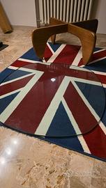 TAVOLINO DA SALOTTO DI DESIGN. gambe in noce e vetro temperato da 1cm. portata vetro 50kg. diametro 120cm. per il mio salotto è grande. mai utilizzato. ritiro con furgone
