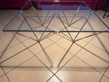 Stupendo tavolo di design stile Paolo Piva, originale degli anni 80, in condizioni eccellenti, cromature e vetro intatti, senza graffi. Dimensioni cm 100 x 100, 35 altezza.