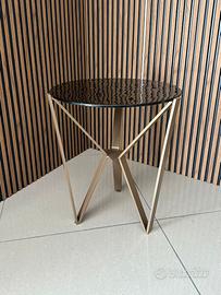 Tavolino da salotto con struttura in metallo verniciato e piano in vetro ondulato bronzo. Disponibile in diverse finiture.