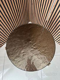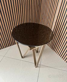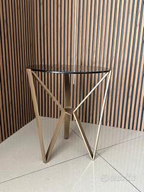 Tavolino da salotto con struttura in metallo verniciato e piano in vetro ondulato bronzo. Disponibile in diverse finiture.