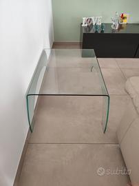 vendo per motivi di spazio bellissimo tavolino da soggiorno interamente di cristallo. misure: Lunghezza 109 cm, Larghezza 63 cm, altezza 34 cm, spessore del vetro 1 cm. condizioni ottime.