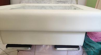 Vendo tavolino da soggiorno basso, con ripiano in vetro e rifiniture in pelle. Tavolino di design comprato al costo di 600€, vendo per inutilizzo.