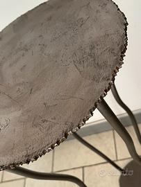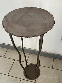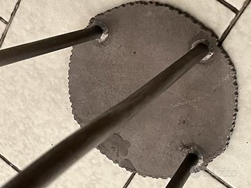 Diametro diametro superiore, centimetri 30, inferiore centimetri 18, altezza centimetri 67 in acciaio ossidato dalla documentazione che ho trovato sembra che questo tavolino portasse un vetro ondulato tanto che veniva chiamato tavolino medusa io l’ho acquistato così in un famoso negozio di design agorà a San Giovanni Lupatoto, Verona
