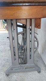 tavolino di legno base ghisa Singer