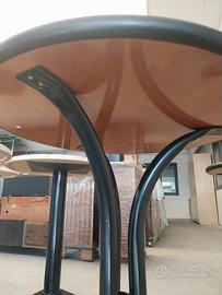 Tavolino di legno con piano effetto ruvido nero, e base metallica verniciata nera. Diametro 60 cm x altezza 74 cm. In buone condizioni. Vendo singolo a 40€ o in coppia (ne ho un altro) a 70€. NO spedizione, ritiro a Ferrara o possibilità di consegna entro 30 km max.