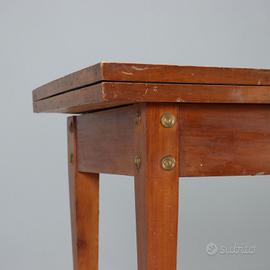 Tavolino Direttorio in ciliegio. Piano rotante apribile a libro, celante vano a