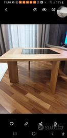 Vendesi tavolino salotto in legno e vetro ambrato posto nella parte centrale superiore del tavolo. Il tavolino è praticamente nuovo poco utilizzato inoltre è presente un altro ripiano sottostante sempre interamente in legno che è possibile rimontare. Misure 90 ×90 cm h 45. Prezzo affare €80. Per maggiori informazioni è possibile contattarmi al seguente recapito telefonico 338 796 7744