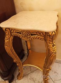 Elegante tavolino stile barocco. Dorato con superficie in marmo