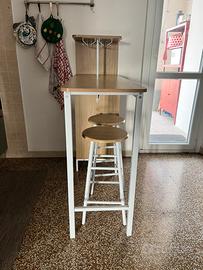 LIFEZEAL Set di Tavolo e 2 Sgabelli da Bar, Bancone e 2 Sedie da Pranzo, Porta Bottiglie da Vino, Portacalici, Cucina, Soggiorno, Ristorante, Struttura Legno e Metallo, struttura in metallo, 2 sgabelli, 120 x 55 x 100 cm