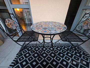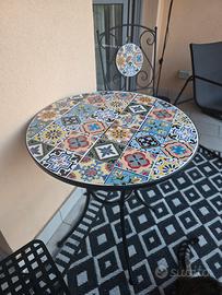 Set Bistrot Tavolino 60diametro Con 2 Sedie Con Mosaico In Ceramica Per Esterno Terrazzo Giardino Pieghevoli Mod-Cefalu