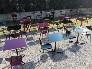 realizziamo arredi in stile vintage anni 50 /60 /70 in particolar modo tavoli in formica, tavolini in formica, sedie in formica ,sgabelli in formica , ma anche tantissimi complementi d'arredo tutti pezzi unici realizzati a mano ,con la possibilta' di personalizzarli a piacere con forme e colori . siamo su FACEBOOK E INSTAGRAM nero vintage . effettuiamo inoltre servizi di allestimento temporaneo per shooting spazi commerciali , ed eventi. chiama per altre info.