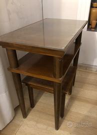 Tavolino a due piani. Se non utilizzato, lo sgabello può agevolmente stare sotto il tavolino.