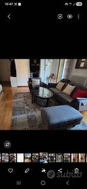 Tavolino da salotto elegante , legno/vetro, colore nero. Forma ovoidale. Dimensioni 125 cm. x 80. Tappeto 3 mt. x 2 fantasia su tonalita' grigio chiaro. Entrambi i pezzi usati poco in quanto posizionati su 2a casa. Cedo per parziale rinnovo arredamento. Il tavolino e' gia' smontato ed imballato per singolo pezzo.