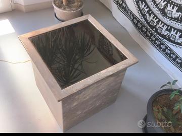 Tavolino effetto infinito,in vero marmo travertino noce e vetro temperato,completamente artigianale per stupire gli ospiti con l’illusione.
