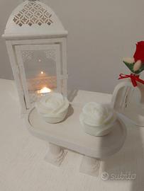 tavolino/espositore in gesso con candele