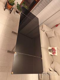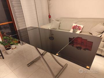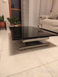 Tavolino trasformabile T115 con struttura in metallo cromo e piano in cristallo nero lucido da 115x74 cm -Con 2 allunghe di 34 cm Tavolino estensibile diventa tavolo da pranzo