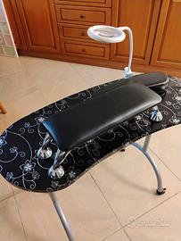 Vendo tavolino da estetista usato per ricostruzione unghie e nail art. (Vendo causa inutilizzo per problemi al collo). Completo di lampada, poggia mani.