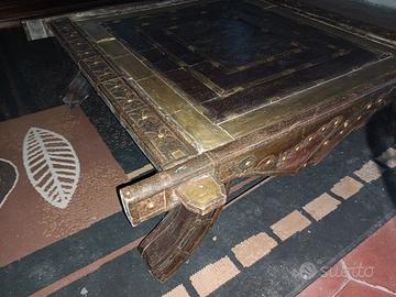 Vendo tavolino etnico quadrato in legno massello, di grande pregio artigianale e forte impatto estetico, ideale come tavolino da salotto, tavolo basso o elemento centrale per ambienti in stile etnico, orientale, boho o rustico.