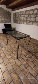 Tavolino in ferro battuto con ripiano in vetro di 8 mm, lavorato a mano.