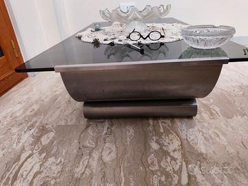 tavolino da caffè Francois Monnet prodotto per Kappa 1970. vetro fumé, struttura in acciaio. François Monnet è un architetto e designer francese. Dal 1968 progetta collezioni di mobili in acciaio per Kappa, diventati veri e propri oggetti da collezione. Misure: lungh 1,55- prof 60 cm - altezza da terra 26 cm.( le spese di spedizione sono orientative). il prezzo è leggermente trattabile