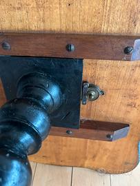 Tavolino a "fratino" (o a piedistallo) d'epoca, risalente alla seconda metà del XIX secolo (pieno Ottocento), caratterizzato da uno stile eclettico che mescola elementi rustici e decorativi.