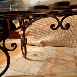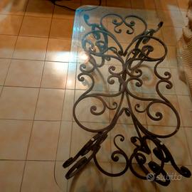 Tavolo basso da divani con base in ferro battuto completamente realizzato artigianalmente su commissione. Pezzo unico disegno esclusivo. dimensioni cristallo 110 x 62. base in ferro. 94 x 51. Prezzo non trattabile