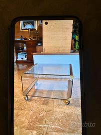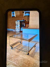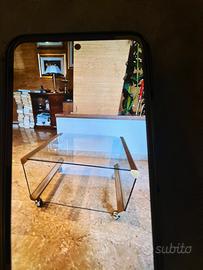 Tavolino cristallo e parti cromate con ruote anni ‘70 Gallotti e Radice H 30 lungh 60 prof 60