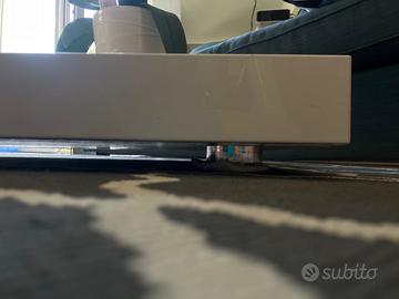 Tavolino basso, design, laccato bianco 136 x 58, h 9 cm