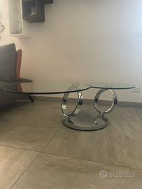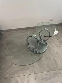 Elegante tavolino da salotto moderno e trasformabile, con struttura in acciaio cromato lucido e doppio piano in vetro temperato. Un pezzo di design senza tempo, che unisce estetica e funzionalità: il piano superiore è girevole e apribile, permettendo di espandere facilmente la superficie d’appoggio fino a 137 cm. Perfetto sia in ambienti contemporanei che classici, dona luce e movimento al soggiorno grazie alle sue linee curve, materiali pregiati e alla base circolare in acciaio a vista.