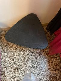 -tavolino TRIANGOLARE -con gambe “contenitive”(io ci ho messo pout-pourry)in pvc trasparente -in PVC NERO ,piano lavorato -molto particolare