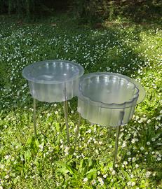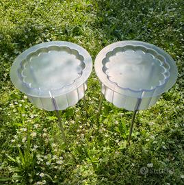 Iconico tavolino "HATTEN", disegnato dalla designer Ehlén Johansson per IKEA alla fine degli anni '90. È facile capire da dove derivi il nome HATTEN, dall'inglese "hat" (cappello). Il tavolino ha la forma di un cappello capovolto su delle gambe: la "tesa" funge da coperchio e all'interno del "cappello" c'è spazio per riporre oggetti. Un pezzo diventato un "cult" del design accessibile, ricercatissimo per la sua estetica pulita e la sua versatilità. Molto funzionale, il piano superiore è rimovibile e funge da vassoio, rivelando un vano contenitore interno. Altezza 60 cm, diametro vassoio 40 cm (diametro contenitore 33 cm). Plastica opaca e gambe di metallo (uno dei due tavolini un leggero alone sul vassoio). Vendo a coppia (140€) o singolo (70€). Ritiro Milano sud, zona metro Romolo.