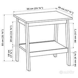 Tavolino IKEA LUNNARP noce – pari al nuovo Testo: Vendo tavolino IKEA LUNNARP tavolino finitura noce. Condizioni pari al nuovo, senza segni di usura. Design semplice e moderno, facile da abbinare a qualsiasi ambiente. Molto pratico grazie allo spazio sotto il piano, ideale per telecomandi, riviste o tablet. Dimensioni: 55 x 45 x 55 cm Caratteristiche: Struttura stabile e robusta Ripiano inferiore portaoggetti Perfetto come tavolino da salotto o lato divano Vendo per cambio arredamento. Disponibile subito.