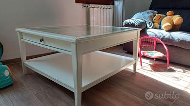tavolino quadrato con cassetto estraibile da entrambi i lati, con vetro, modello Ikea in buone condizioni