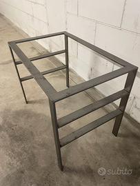 Tavolino in acciaio inox con possibilita di piu ripiani che non sono compresi. Solo struttura perfettamente conservata.