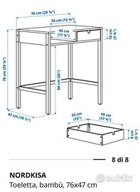 vendo tavolino NORDKISA come nuovo, nessun segno di usura. Toeletta, bambù, 76x47 cm prezzo di listino €119