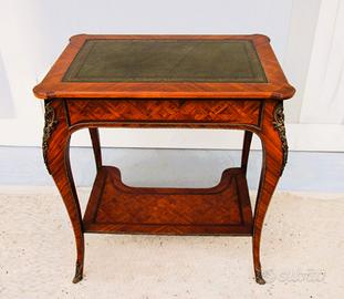 Elegante tavolino Francese Napoleone III, lastronato in bois de roses da salotto.