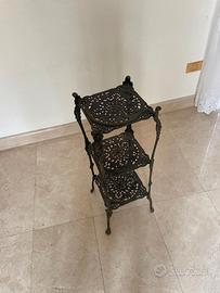 Tavolino in bronzo traforato, tre ripiani, produzione anni '50. Dimensioni: 28cm x 28cm - h73