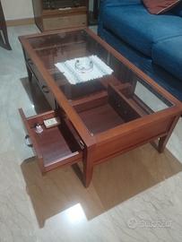 tavolino in ciliegio con piano in cristallo e tre cassetti a scorrimento. perfette condizioni. misure: 120 x 60 altezza 40 cm.