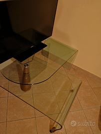 Causa inutilizzo per spazio ridotto e cambio arredamento vendo tavolino da soggiorno in cristallo con base in ciliegio acquistato da divani &divani. Il tavolino è composto da 2 ripiani di cui uno mobile con rotelle sempre in ciliegio.