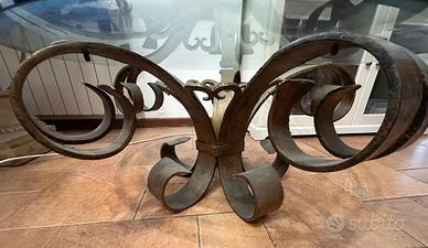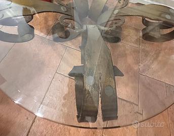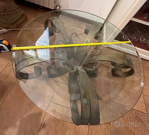 Tavolino in cristallo e ferro battuto