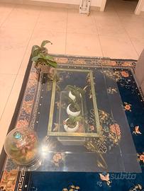 Vendo elegante tavolino da salotto con piano in cristallo e struttura in metallo dorato.