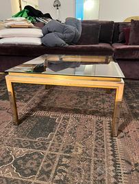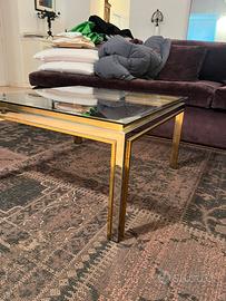 Tavolo da salotto in cristallo ottone e metallo argentato Misure 68*68 H 38