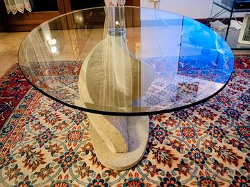 Vendo tavolino in cristallo ovale e basamento in pietra.