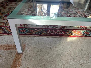 Tavolino struttura in ferro verniciato a fuoco e piano in cristallo. Misure 120x120/h. 35 cm.