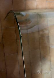 Tavolino in cristallo basso ! Tavolo in cristallo basso Piccola scheggiatura come in foto non si vede ! Misure 90x90 H/altezza=38cm