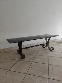 vendo tavolino in ferro battuto con ripiano in vetro dimensioni 140 lunghezza,60 larghezza, h 45 per veri intenditori